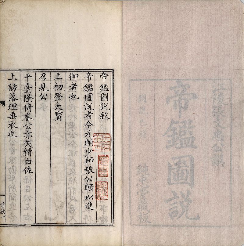 內封页題“江陵張文忠公譔,帝鑑圖說,闕說已補,純忠堂藏板”。