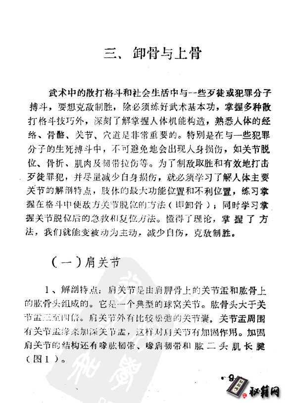 “点穴”、“卸骨”历来被人们认为是我国武术技击中的两大绝技,由于历史的缘故,长期以来被罩上一层神秘的外衣,很少得以外传。