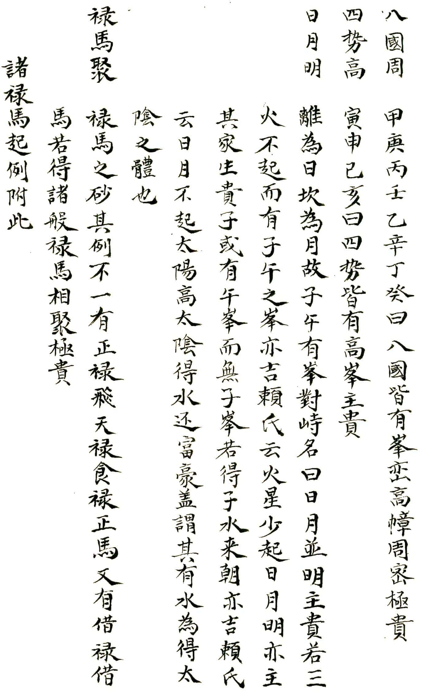 正变歌正变歌,九星正变何其多,姑幕正形為次第,略排图例正蒙讹,变形触类由人举,心自聪明事不难,太阳正体覆钟似,太阴新月半光辉,金水両肩似飞凤,紫炁貟直笏囊垂,天财正躰如屏笏,凹脑双脑如官誥,燥火尖刀样最凶,扫荡曳帛展旗同,天罡张盖形相并,孤曜饱直如覆磬,次名开口三悬乳,四是弓脚五双臂,单股第六侧脑七,八為没骨平面毕,此号九星逓变名,每星九九変其形,只是脚变头不变,活泼心中应变成,吾今宜切传程子,為念孤贫兴奋情,阴阳造化神鬼秘,寡德之家莫乱鸣,轻将此术沽财酒,丧行招殃自不轻。