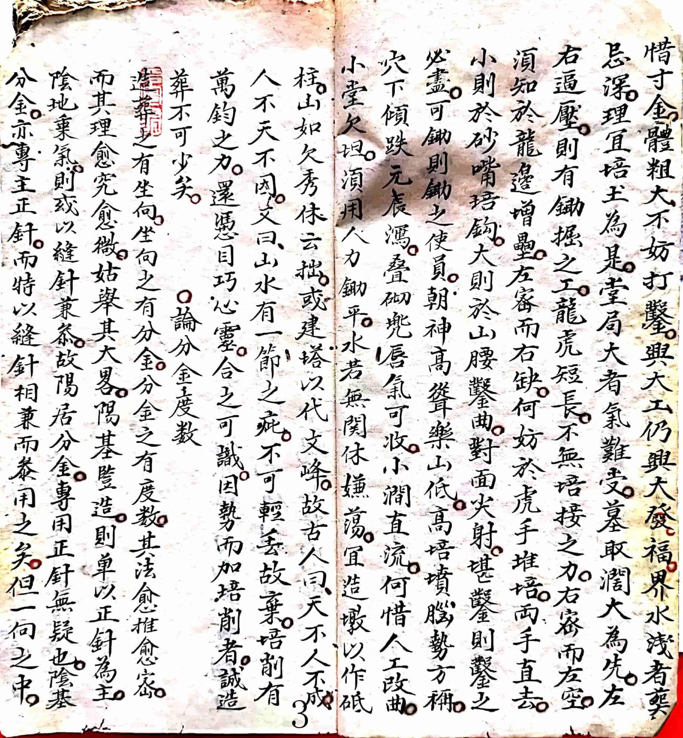 大凡寻龙点穴,先须心鑑明通,次归目力神巧,盖心镜明,则妙理斯能解会,目力巧,则临局方知剪裁,两者缺一不可也,然欲开心镜,无如究古籍,投明师,至若较目力,尤在覆旧坟,鉴徃事,庻几由古可以知今,观徃可以推来,不则,饱读满腹,而登山懵然,穷年牖下,又何益哉,予自二十岁前,地理诸书悉已经目,理明矣,而山形莫辨也,及访诸师,授据山砂,辨认形体,山虽能剖而取用,又无真见也,於是遍求仙跡,求其所以致富致贵者,山水何若,所以得贫得贱者,山水何若,尽之裔夭祸福,兴败迟速之故,无不瞭然在目矣,故古云,遍观一年坟,胜读千年书,然则古先坟墓,可以辞劳而不徃鑑之乎,前贤图格,可以厌弃而不参究之乎,噫予之得斯道也,虽不敢忘吾杨仙师之至教,而尤得益於鉴观仙跡之居多也,偹具数语於左,以广同志者之一助云尔,今日破千工,他年补万万钟。