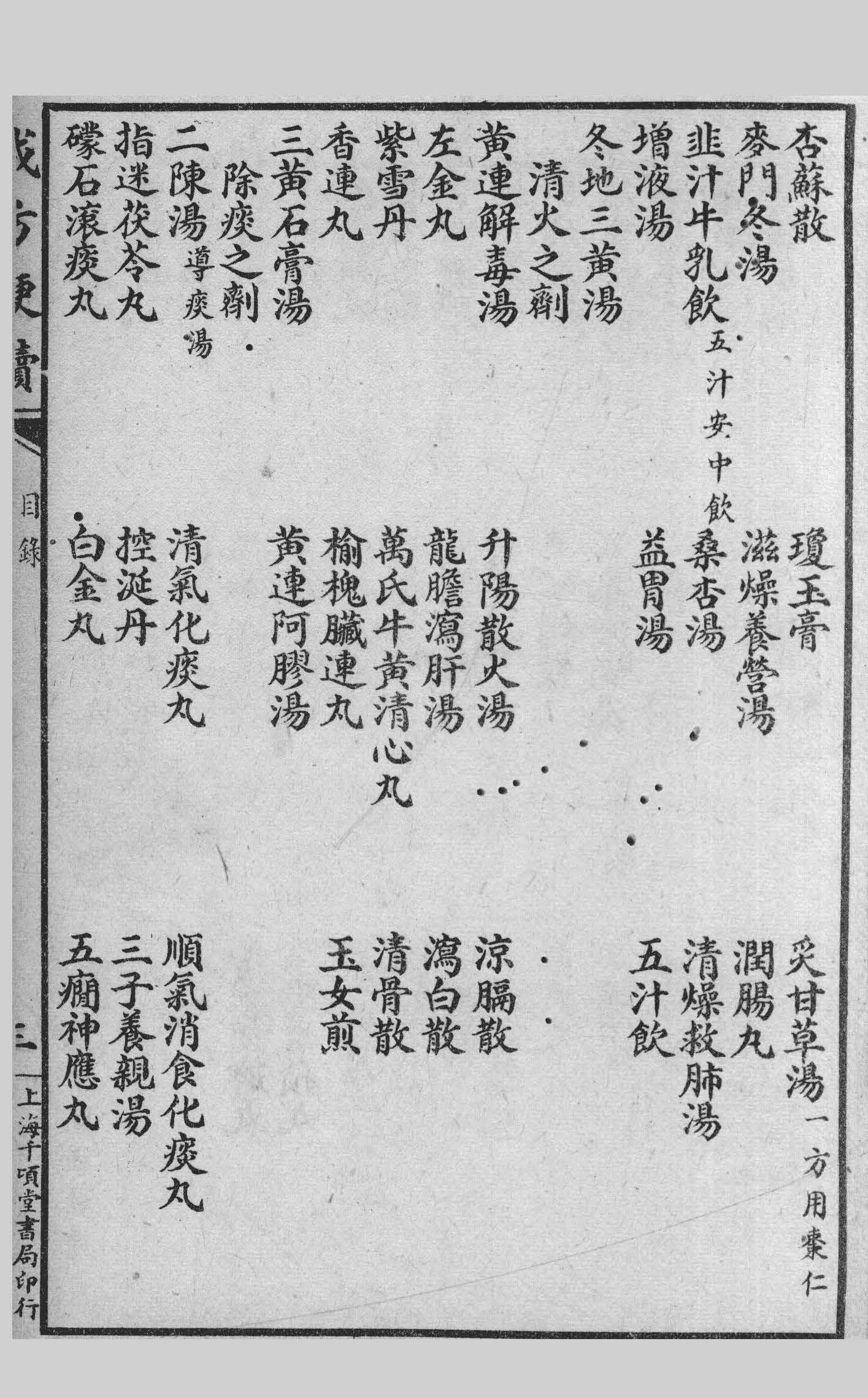 此书原為初学者诵习而设,不过使之胸有成法可寻故其中歌诀,止取谐声不限音韵,且歌中均以方名贯首,平仄亦在所不计,读者谅之。