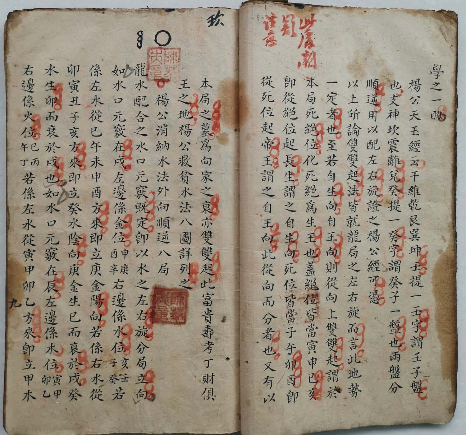 水口详於玉尺,辰為水库,戌為火库,丑为金库,未為木库,此四口也,双双起之法,即从水口而分,请先论水口,盖水口各有左右旋,凡左水倒右谓之左旋,以壬子盘格水癸子盘格峰,右水倒左谓之右旋,以癸子盘格水壬子盘格峰,左旋顺行右旋逆转,壬子盘为顺,癸子盘為逆,壬子盘者,壬子同宫,癸丑同宫,良寅、甲卯、乙辰、巽已、丙午、丁未、坤申、庚酉、辛戌、乾亥皆然,癸子盘者,子癸同宫,丑艮同宫,寅甲、卯乙、辰巽、已丙、午丁、未坤、申庚、酉辛、戌乾、亥壬皆然,癸子盘同宫者,皆禄,谓癸禄居子,良禄居丑之类,壬子盘同宫者,皆刀,盖禄前一位為阳刃,子前则壬,丑前则癸之类,用法要随龙局以為配合,倪公阳宅水法取禄不取刃,乃一偏之论耳,地盘正针所以格龙,此一定之法,如地之静而不动也,壬子癸子,两盘谓之天盘,随左右旋之不同格,水格峰,因局而异,如天之变动不拘也,时师不明此义,以正针為地盘,中针為人盘,缝针为天盘,乃后人所加之名也。