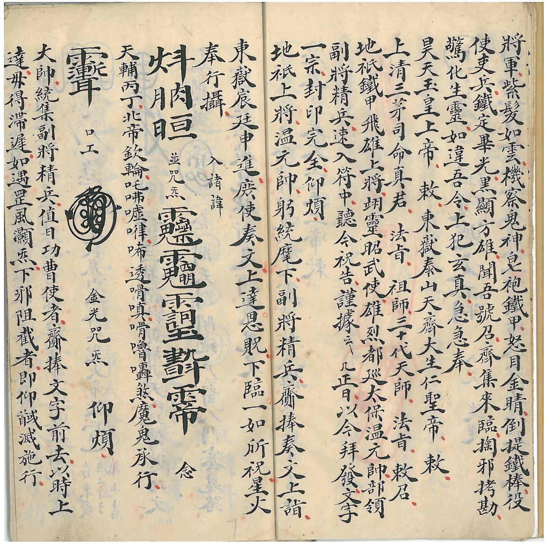内容包含:正一合契符章门、书符存用、随符书篆、总召万灵符、开天符、护送火铃符、通天符、澈地府、雷火通章达御符、风火符、升真度火符、解秽符、聚形符、朱帅符散形、聚形、殷帅符散形、地司郊殷镇宅等。