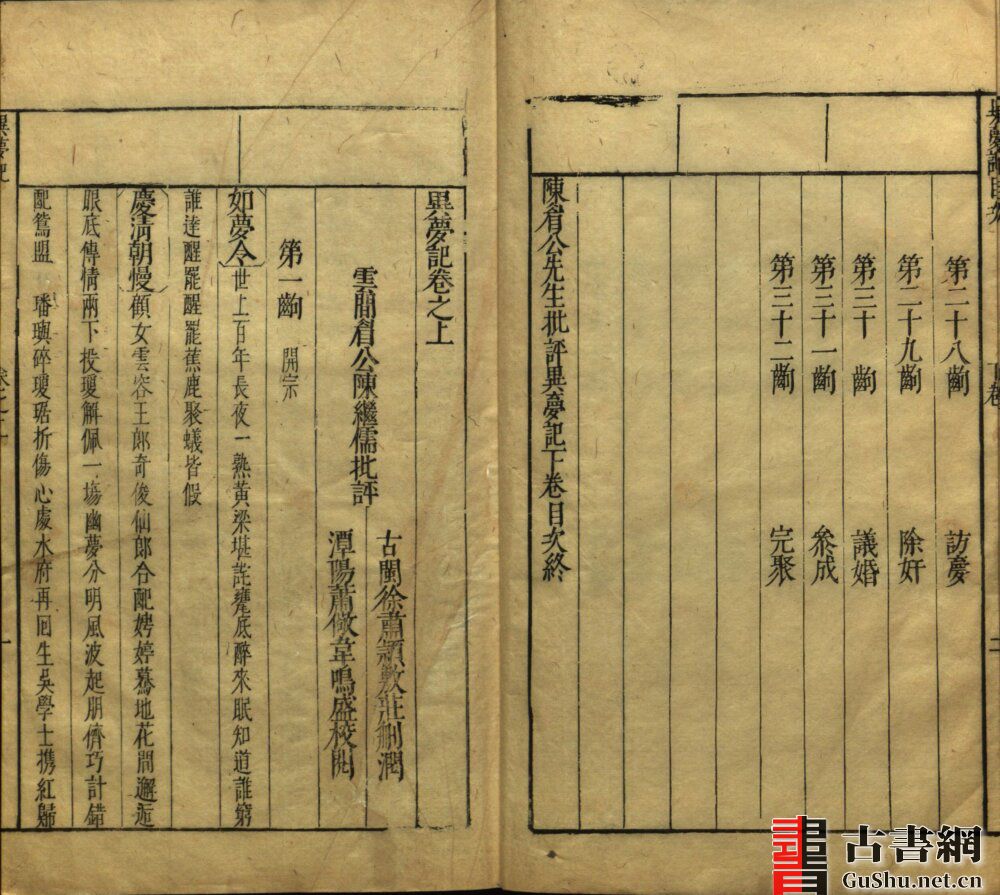 古籍.陈眉公先生批评异梦记. 二卷. 明. 陈继儒批评. 明万历时期师俭堂刊本