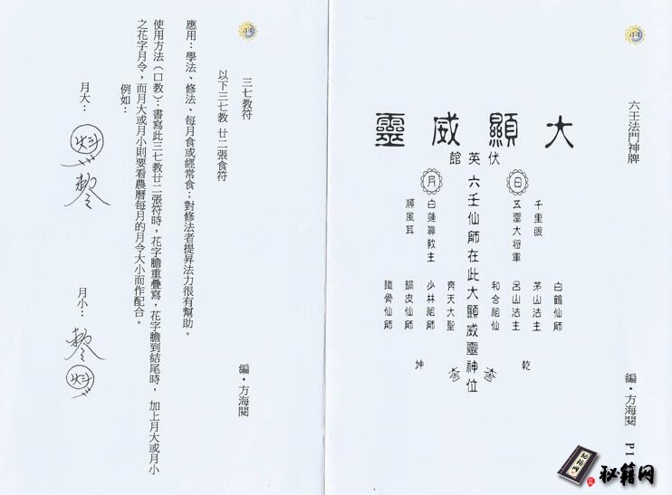 书名:《方海閱三七教符》刻印方式:手抄