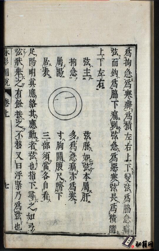 本书上卷“七表脉总要歌”,论述浮、芤、滑、实、弦、紧、洪七种脉的体状和主证;“八里脉歌”论述微、沉、缓、涩、迟、伏、濡、弱八种脉的体状和主证;“九道脉歌”论述长、短、虚、促、结、代、牢、动、细九种脉的体状和主证;“奇经八脉歌”则论述阴维脉、阳维脉、阴跷脉、阳跷脉、冲脉、任脉、督脉、带脉的循行部位,体状及临床意义。