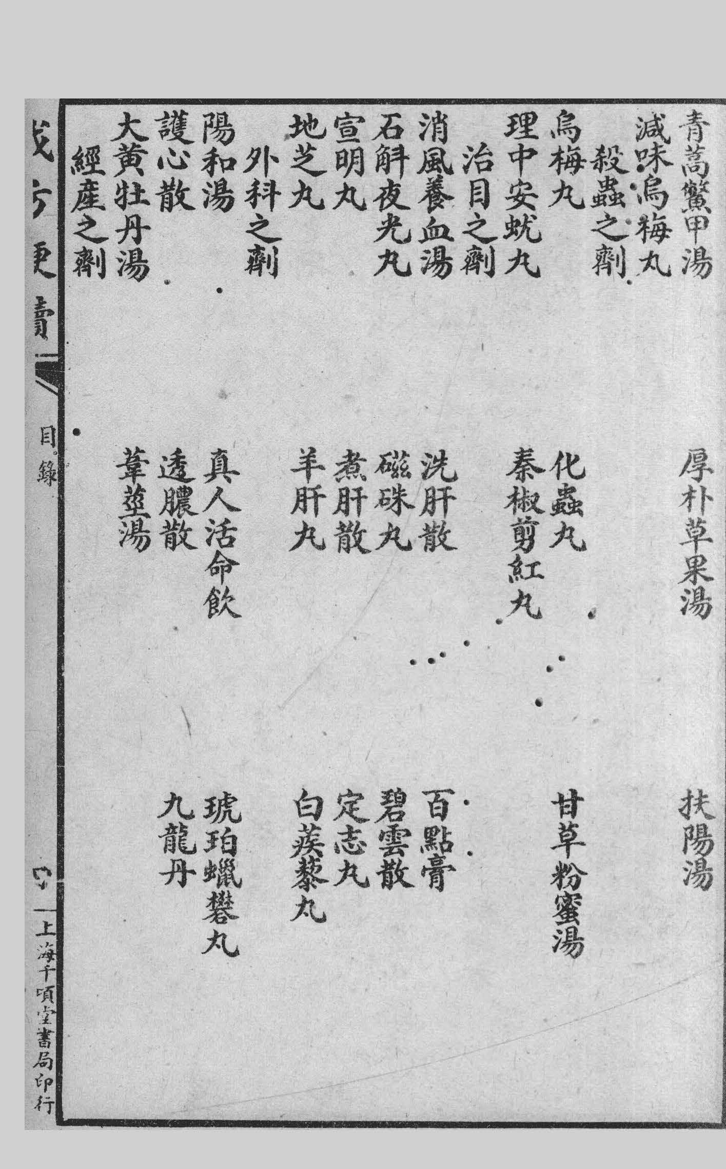 此书原為初学者诵习而设,不过使之胸有成法可寻故其中歌诀,止取谐声不限音韵,且歌中均以方名贯首,平仄亦在所不计,读者谅之。