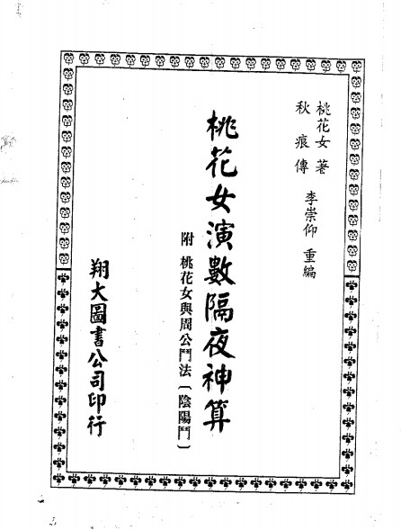 桃花女运用九九八十一数,配合阳四时之气,并参易理,共得二五六数,将人间明日之一切,及未来之悲欢离合、吉凶祸福,悉隐数中,无以遁形,如法卜算,咸能前知,秋痕得研此术,遂以此册相贻。人人易学,趋吉避凶,简明实用。