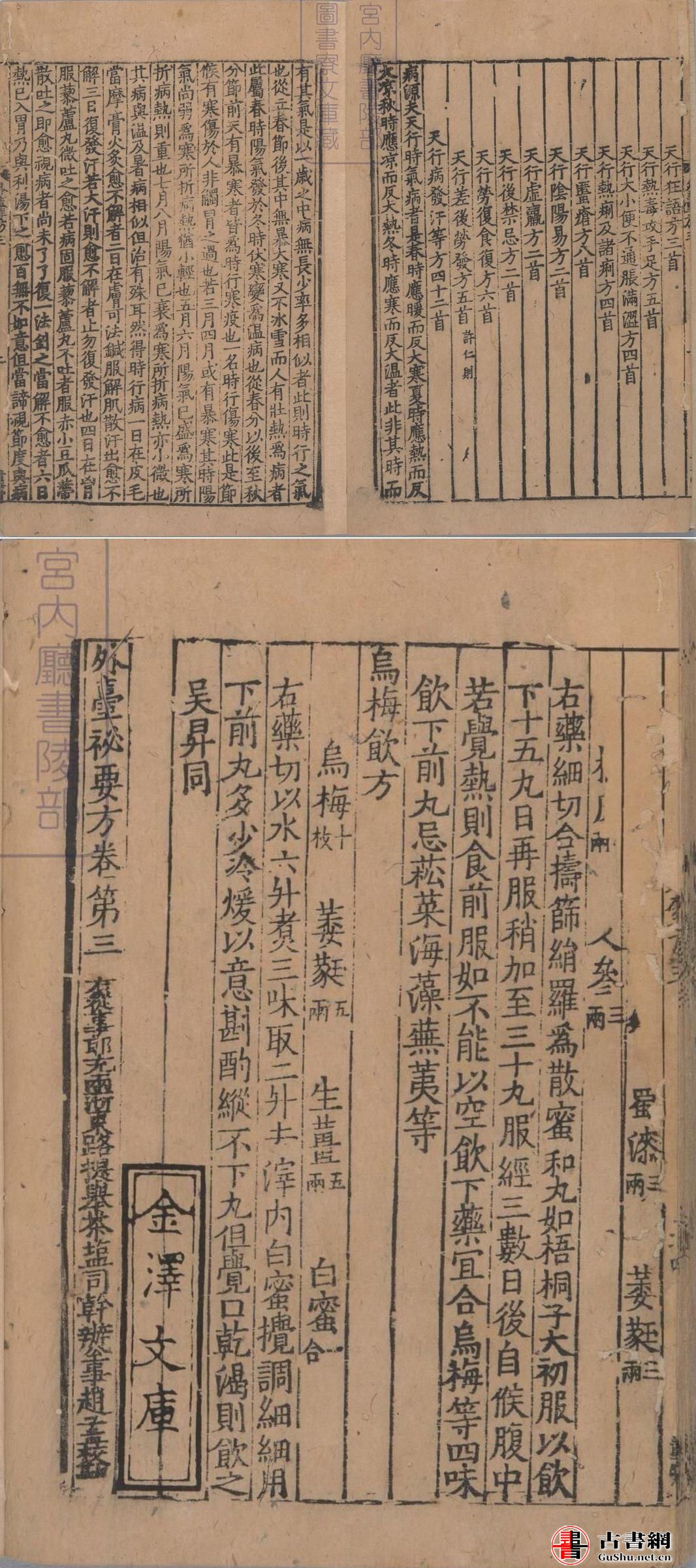 中医古籍.外台秘要方. 存卷 3.6.9.11.21-23.25-28. 唐. 王焘著. 南宋初刊本 丨宫内厅书陵部藏