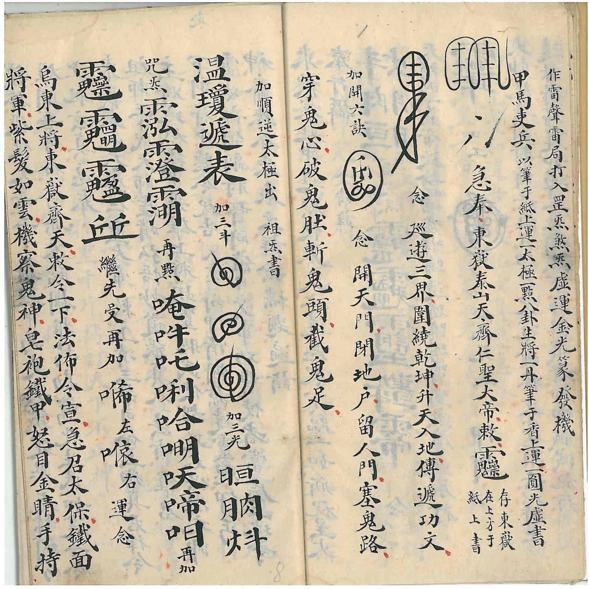 内容包含:正一合契符章门、书符存用、随符书篆、总召万灵符、开天符、护送火铃符、通天符、澈地府、雷火通章达御符、风火符、升真度火符、解秽符、聚形符、朱帅符散形、聚形、殷帅符散形、地司郊殷镇宅等。